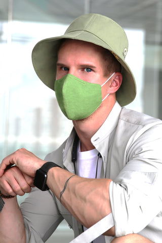 2. With the cartilage strips on the nose facing upwards, hold the mouth cover against your face and hook the ear.